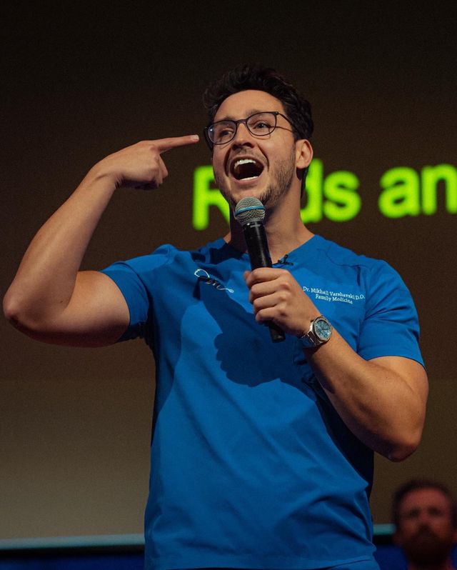 In the limelight Catching up with the most-followed doctor on social media Mikhail “Dr. Mike” Varshavski, DO, provides updates on his fight against medical misinformation, his efforts to fund scholarships for students and an exciting new project on the horizon. Aug. 12, 2025TuesdayAugust 2025 issue Ahmed Nahian, OMS III Ahmed Nahian, OMS III, is a third-year, dual-degree (DO, MS) osteopathic medical student at the LECOM-Seton Hill. He has served in national and campus leadership roles with the Pre-SOMA as a National Health Disparities Coordinator and chapter president. He is also an editorial advisor to The DO. Contact Student Doctor Nahian Facebook Twitter LinkedIn Email Topics DO & student voicessocial media Before he became the most-followed doctor on social media, Mikhail Varshavski, DO, (popularly known as “Doctor Mike”), was a second-year family medicine resident simply trying to finish his notes. Then the Internet found him. Crowned the “Sexiest Doctor Alive” by People magazine in 2015, Dr. Mike could have ridden a wave of vanity. Instead, he built a platform that reaches over 100 million viewers monthly, one that trades clickbait for clarity and fame for purpose. “While it may seem silly, fame allows you to have impact,” he told me. “With impact, I can then change the 30, 40 people that I could benefit in a given day to 30, 40, 50, 100 million that I can impact over the month through my social media channels.” Fame found Dr. Mike during residency. Dr. Mike didn’t just go viral; he made virality virtuous. The AOA board-certified family physician demonstrates how fame can be a tool for promoting good health and healthy habits: “I would speak to people about this BuzzFeed article or People magazine title, but then I would follow it up with the need for vaccines, the value of lifestyle modifications in changing chronic health condition outcomes.” Below, Dr. Mike shares details about his origin story, updates on his latest projects and some words of advice for osteopathic medical students and physicians. Dr. Mike A childhood framed by osteopathic medicine Dr. Mike immigrated from Russia with his family at a young age. His father, who was an MD in Russia, was accepted at the Émigré Physicians Program at what is now the New York Institute of Technology College of Osteopathic Medicine (NYITCOM). This program was previously the only path in the U.S. for qualifying foreign-trained physicians to acquire a DO degree. Related “I got to watch him study. I would go with him directly to [NYITCOM], be on campus,” Dr. Mike said. “It felt very human-focused, like you could genuinely help other people in a very tangible and quick feedback loop. It fit my skill set: I felt like I was always good at communicating with others. I was always adept at getting great scores on science subjects, so, as time went on, I realized that the field spoke to me in a number of ways.” As a teen athlete recovering from injuries, he became the test subject for his father’s osteopathic manipulative treatment (OMT) techniques. “I watched some of his techniques help me recover faster and make my pain go away. It got me excited to want to learn about the human body in that way and think outside the box, especially with the fact that he was being trained to think incredibly holistically.” Dr. Mike was accepted into the accelerated 7-year BS/DO program at NYITCOM. “My dad’s education was happening before my eyes, and I associated the way that I thought about the world with an osteopathic view. Being that I was already on the [NYITCOM] campus, I said that’s where I want to go, and luckily and fortunately, I was accepted into the program and was able to finish it in seven years.” While he initially imagined himself as a surgeon, it was family medicine that won him over. “Family medicine allowed me to be the quarterback for my patients’ care,” he explained, noting that while specialists are very important, he enjoys the family physician’s role of helping patients determine when they need to see a specialist or need certain procedures. The future Dr. Mike is shown with his mom. When the spotlight hit That impact expanded beyond the clinic when the viral fame took hold and Dr. Mike was featured across national television shows. The sensationalization did not, however, take away his sincerity. “The gatekeepers of the traditional media sphere, the ones that were on the news programs, on the talk shows, once the superficial angle got boring for them, they were no longer interested in the medical side of things,” he said. Dr. Mike pivoted to YouTube. He began breaking down health myths, reacting to medical scenes in TV dramas and posting high-yield, evidence-based health explainers. “We are quick to villainize social media, but there was benefit to this type of social media,” Dr. Mike, now the newest UNICEF USA Ambassador, said. “I was able to not only directly counter the misinformation that my patients were falling victim to, but at the same time, I was also able to get ahead of the misinformation and almost vaccinate viewers with accurate info. When misinformation came their way, they already knew that it was untrue.” Now with over 14 million subscribers and 100 million monthly views, he has created what might be considered a virtual and global “exam room.” Fighting misinformation at scale “When someone searches for something, whether it’s on Google or YouTube, usually what comes up is the most viewed content. A lot of times, the most viewed content is sensationalized, corrupted, inaccurate, but we’re doing it with accurate information,” commented the Webby Awards winner. “We’re competing for those top search results, we’re being there on the homepage for individuals and we hope to continue doing just that.” His goal is to inoculate the public against misinformation before it spreads. “There’s all sorts of false guidance about medications,